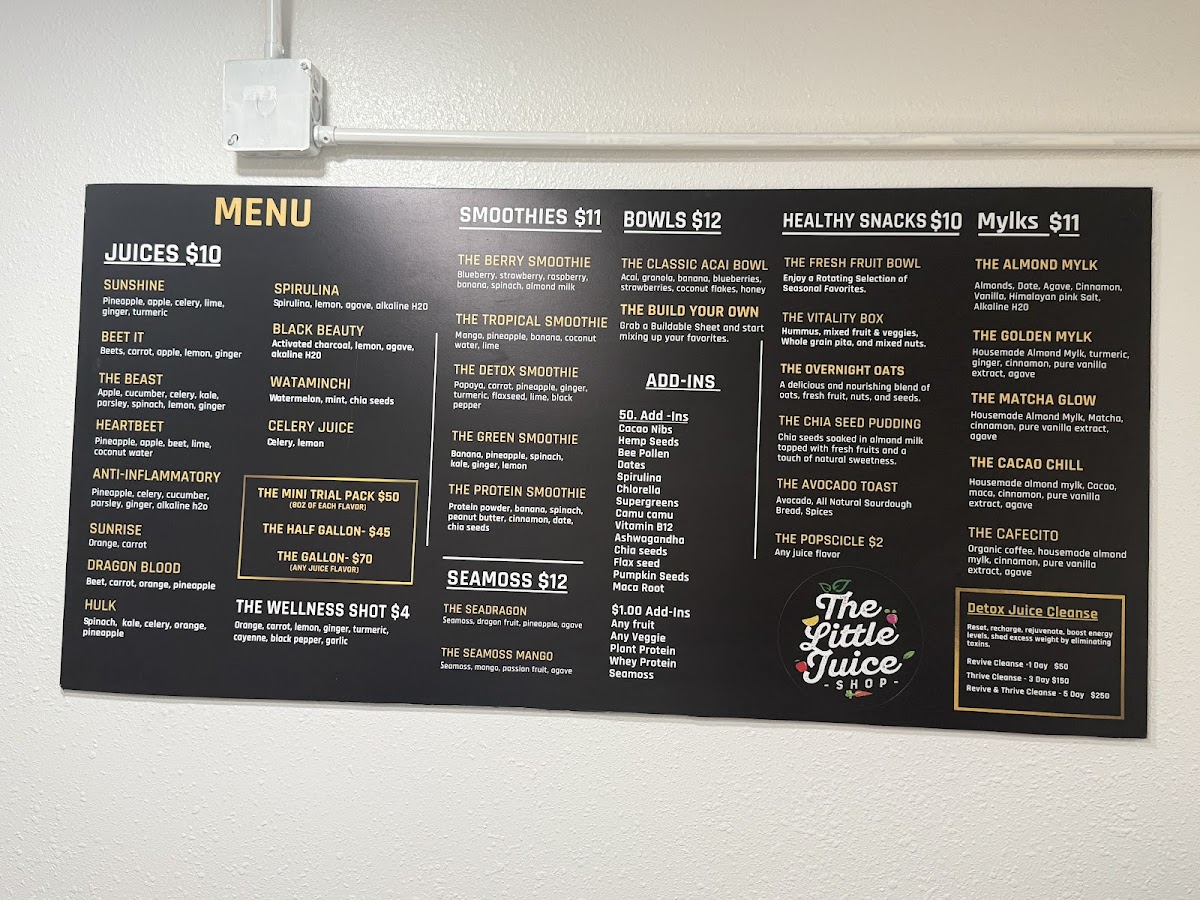 The Little Juice Shop, nestled in Houston’s vibrant Heights neighborhood, offers a fresh and thoughtful menu that celebrates wellness and flavor. Their signature Seamoss juices, like the Seadragon (dragon fruit, pineapple, agave) and Mango Seamoss, are nutrient-packed blends prized for their natural energy and immune-boosting properties. For those craving a wholesome bite, the Acai Bowls shine—especially the Classic Acai Bowl topped with granola, fresh berries, coconut flakes, and honey. You can even personalize your bowl with a choice of fruits and superfood toppings, giving you a nourishing boost tailored to your taste.